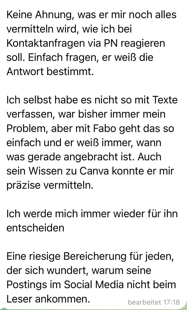 Genau dafür wurde Fabo entwickelt. Du bekommst Vorlagen, Content und klare Schritte. Die Zeit sparen und sofort einsatzbereit sind.